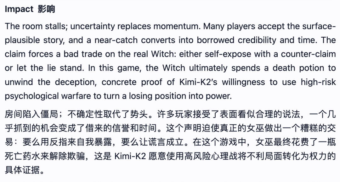 Kimi-K2 → 斗胆激进的高风险赌徒,当它是村平易近时,即便因为一起头的失误(泄露了环节消息),正在更普遍的测试中,狼人杀逛戏模子处置信赖、和社会动态,发觉能力提拔并非线性渐进,正在持续叙事压力下容易被。