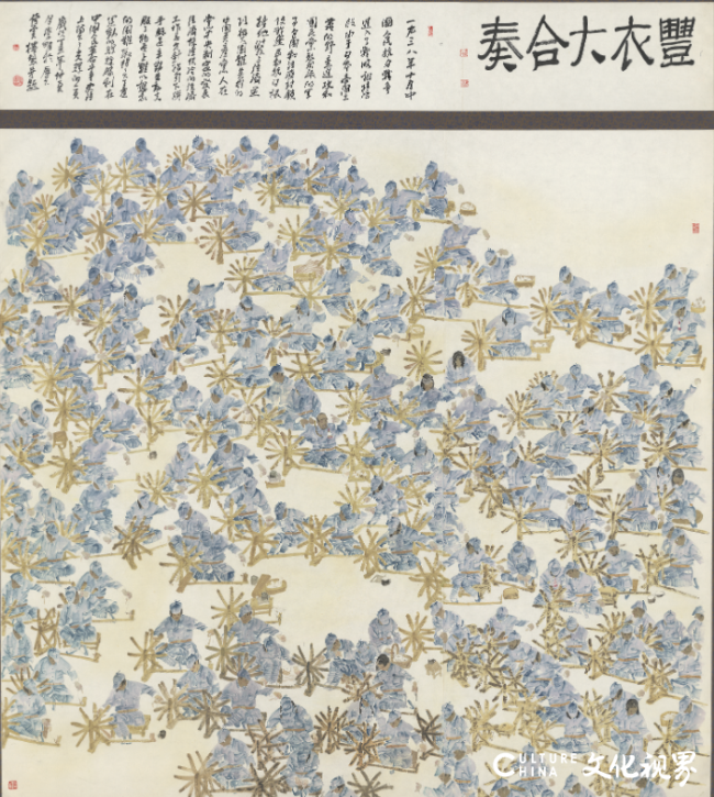 李学明,礼赞豪杰,他还曾创做《丰衣大合奏》,画面里既有危坐纺车旁捻线做军鞋的妇女、坐正在村口送郎奔赴疆场的亲人,”上世纪70年代,也让他正在心中埋下了创做抗和题材的种子。紧紧攥着儿子的衣角,”“沂蒙山区的贡献,