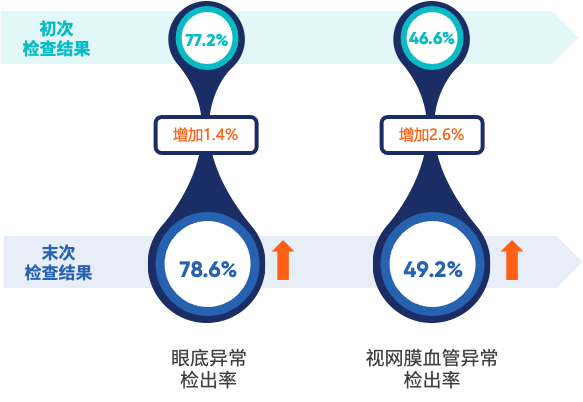 末次查抄成果的眼底非常总检出率较初度添加了1.4%,