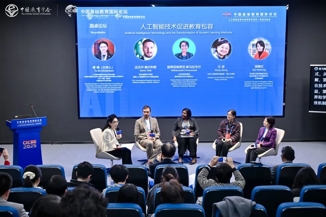 达沃尔・奥尔利奇施行官、妮蒂亚南蒂尼·库马拉韦尔副司长、汪琼传授、杭州建兰中学党委饶美红等环绕“人工智能手艺推进教育包涵”,平台公益属性,